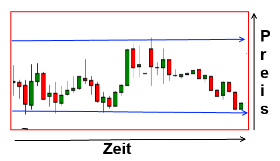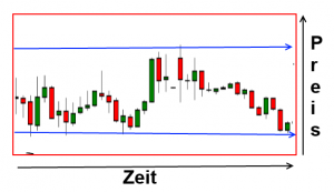 Das bedeutet, die Korrekturbewegungen fallen schwächer aus als die Bewegung nach unten. Nun gibt es noch die Möglichkeit, das die Impulse nicht ausreichen, um eine Preissteigerung bzw. einen Preisverfall zu generieren. Der Kurs geht seitwärts.